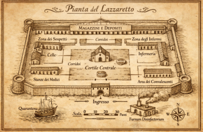 Un esempio celebre di lazzaretto è quello di Milano, immortalato da Alessandro Manzoni nei Promessi Sposi, dove il racconto dei contagi e dell’isolamento dei malati offre uno spaccato vivido delle sofferenze e delle regole dei lazzaretti lombardi.