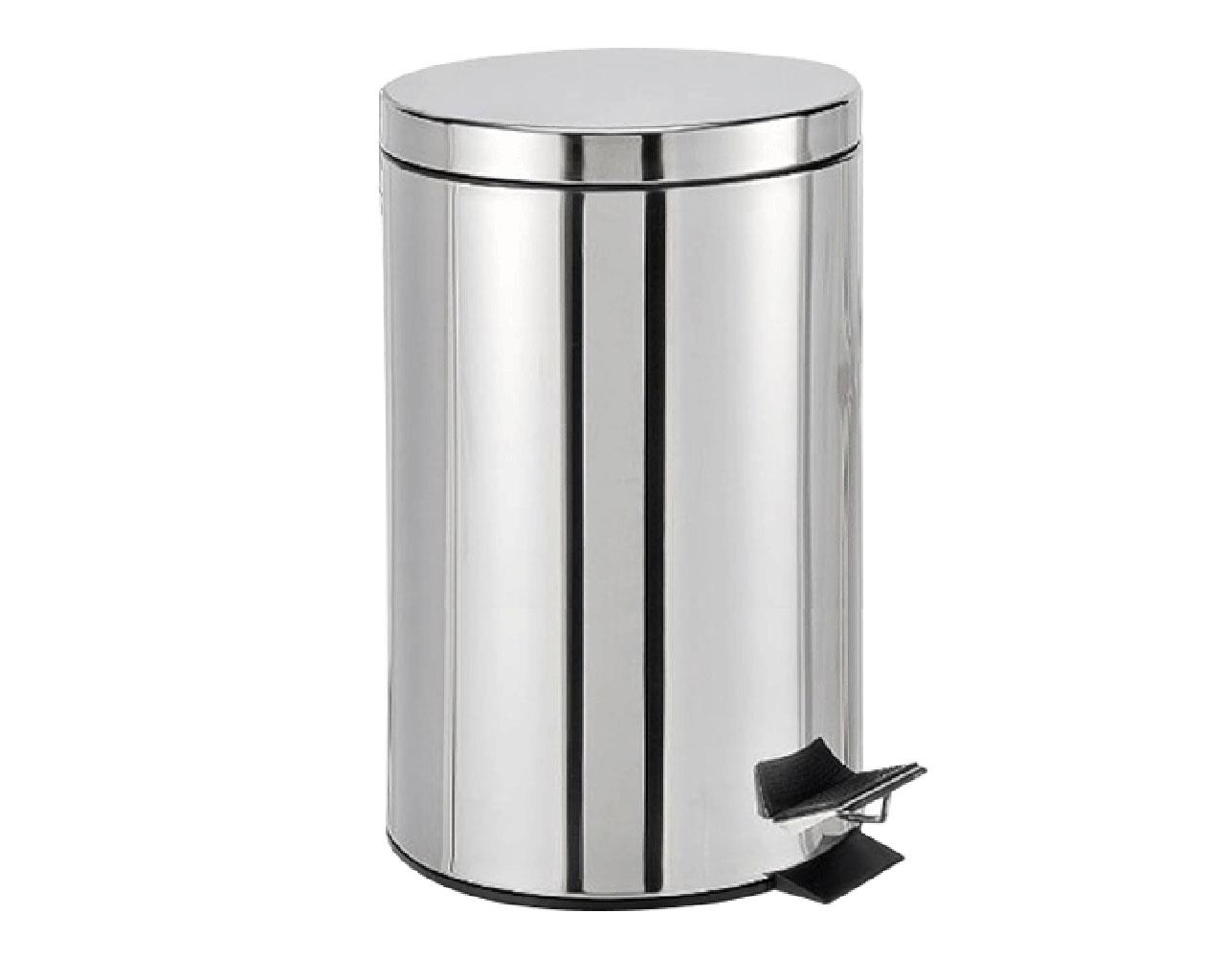Pattumiera a pedale in acciaio inox, con secchio interno in plastica.