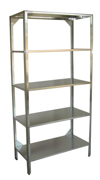 Sistema di scaffalatura in acciaio inox AISI 304 con finiture scotch brite.