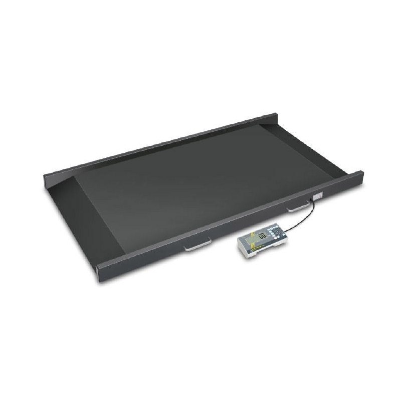 Bilancia per barella Kern MWS 300K-1LM, particolarmente indicata per pesare pazienti su sedie a rotelle o barelle, grazie alle grandi dimensioni e all'ampia portata. La piattaforma è ribassata ed è accessibile da entrambi i lati, tramite le piccole rampe.