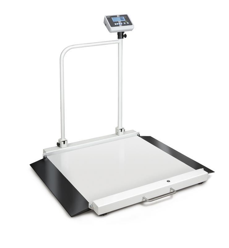 Bilancia per sedia a rotelle Kern con due rampe integrate per una comoda salita, con certificazione di approvazione e autorizzazione all'uso medicale fisso, per l'uso professionale nella diagnostica medica.
