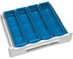 Divisorio a tre scomparti per carrello farmacia.