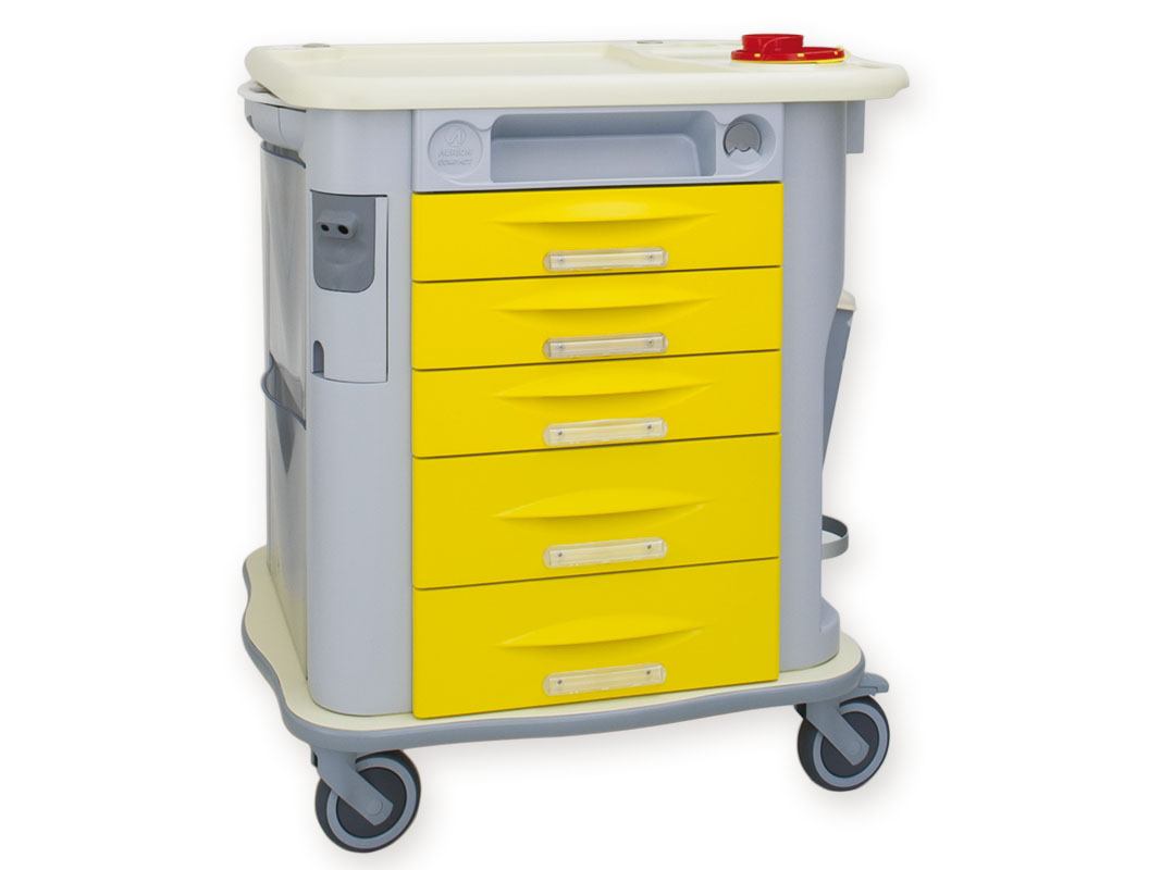 I carrelli Aurion sono ergonomici, modulari, personalizzabili e modificabili nel corso del tempo. Le maniglie sono termoformate sulla scocca, così come lo è il top di lavoro dall’ampia superficie e bordatura perimetrale contenitiva. Ogni cassetto presenta un supporto per etichetta.