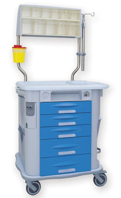 Carrello terapia Aurion caratterizzato da design innovativo, qualità superiore e una dotazione di accessori completa.