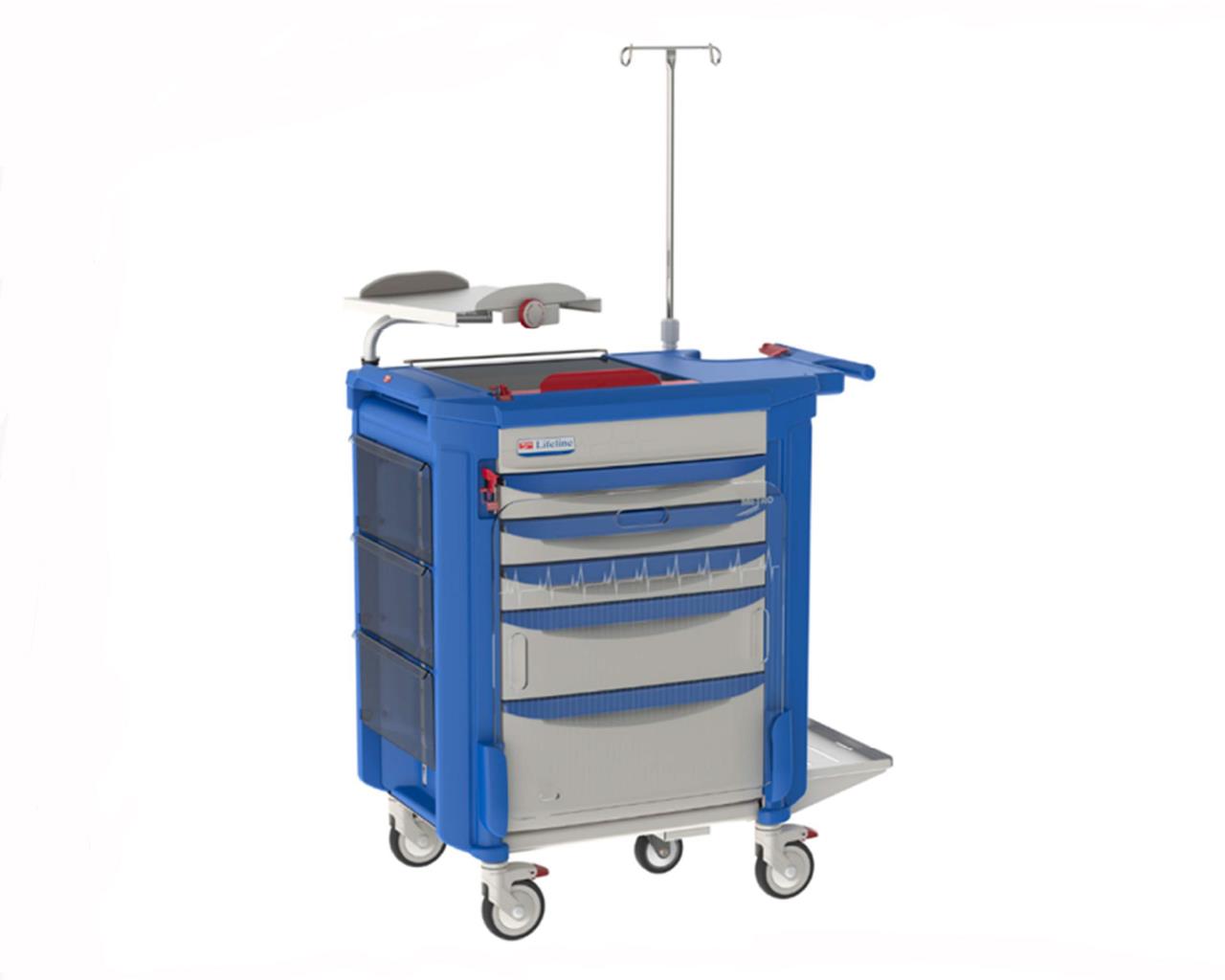 Carrello Emergenza Metro® Lifeline® di colore blu (corpo del carrello e frontalini) e con cassetti grigio chiaro.