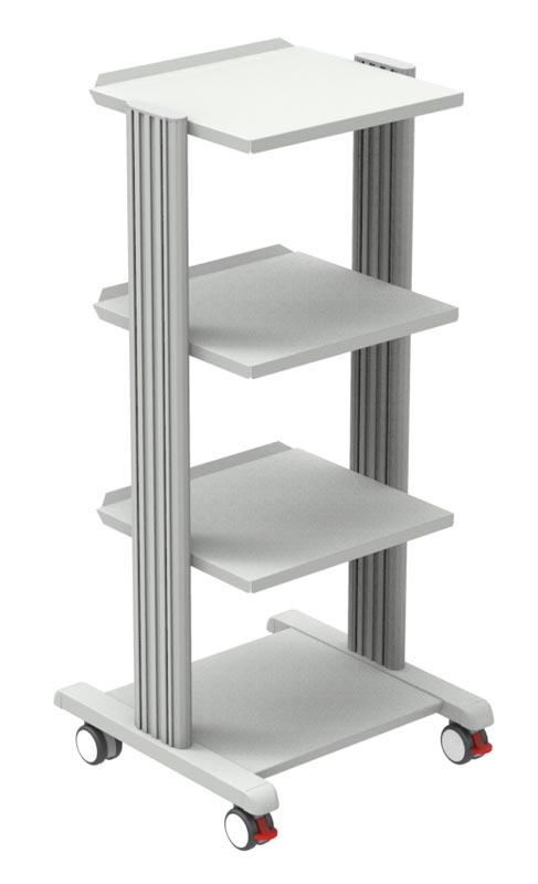 Carrello Smart di nuova generazione di colore grigio/bianco RAL 7035 con struttura in alluminio e 4 ripiani, ampi e resistenti, verniciati a polvere. I ripiani non sono estraibili.