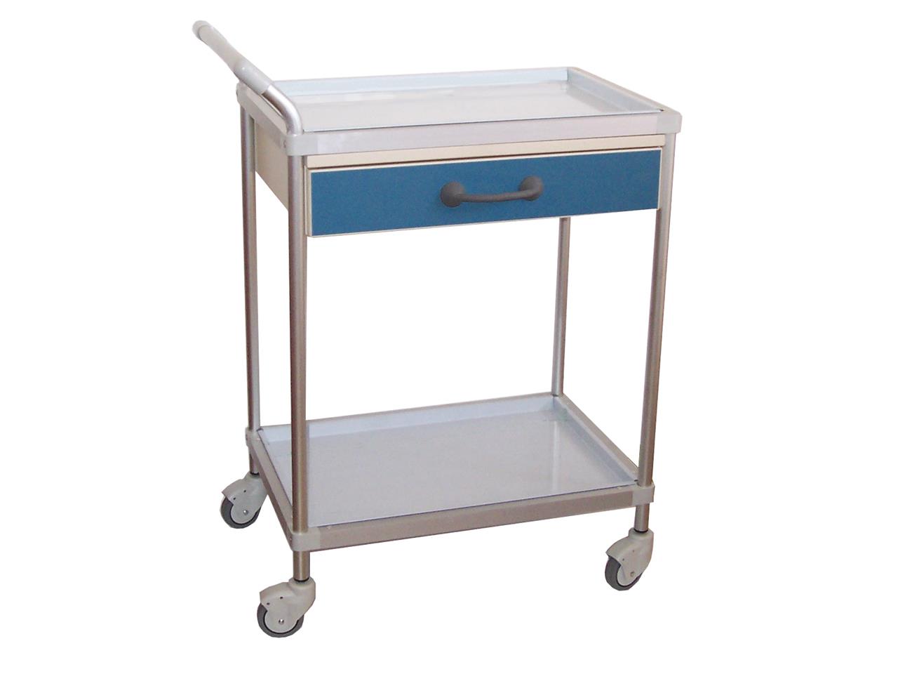 Carrello di alta qualità, costruito in lega anodizzata ultraleggera e ripiani in acciaio inox, staccabili. Dotato di 4 ruote in gomma Ø 80 mm. Produzione italiana. Spedito smontato.