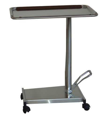 Tavolo di Mayo con pompa, vassoio in acciaio inox removibile e base in acciaio inox AISI 304 su rotelle.