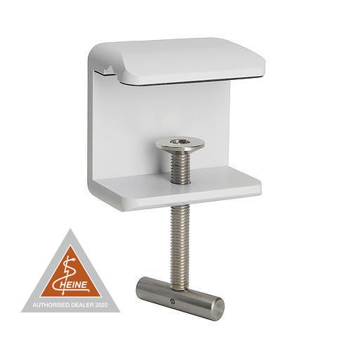 Sistema di fissaggio a morsetto per il montaggio su tavolo della lampada da visita HEINE® EL 3 LED da parete.