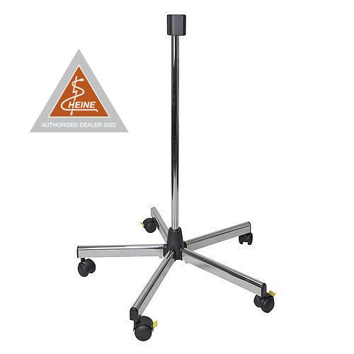 Stativo in metallo con 5 ruote e attacco per il fissaggio da aggiungere alla lampada da visita HEINE® EL 3 LED con fissaggio a parete.