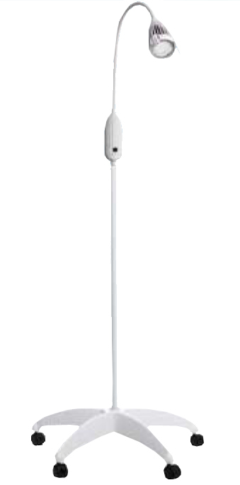 Lampada flessibile su piantana a 5 rotelle. Leggera e versatile, può essere impiegata per esami e per procedure di piccola chirurgia in ambulatori, cliniche e ospedali. Utilizzabile anche in veterinaria.