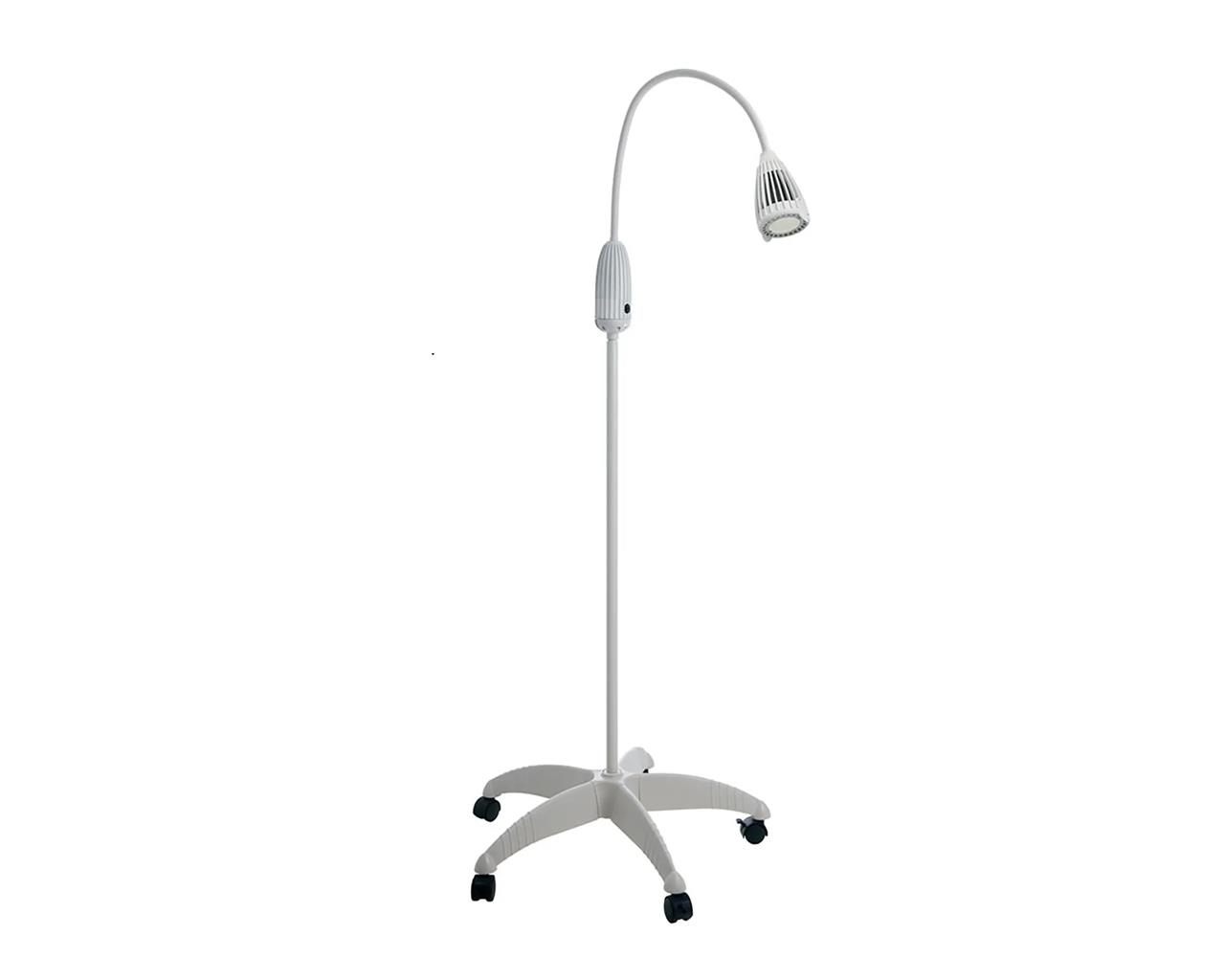 Lampada flessibile su piantana a 5 rotelle. Leggera e versatile, può essere impiegata per esami e per procedure di piccola chirurgia in ambulatori, cliniche e ospedali. Utilizzabile anche in veterinaria.