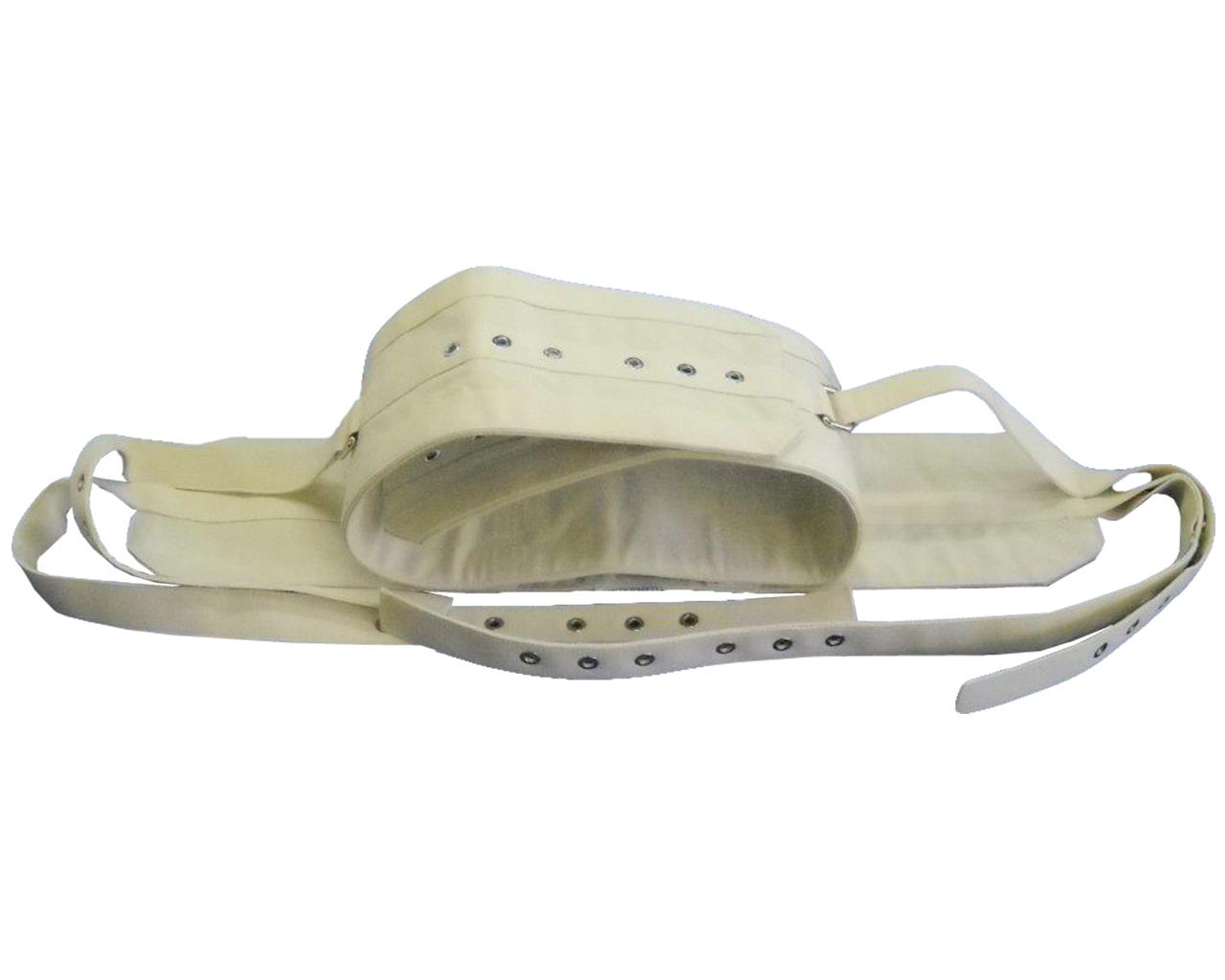 Cintura di contenzione per letto doppia fabbricata 100% in cotone, composta da due fasce, una interna da applicare al girovita del paziente e fissare con bottone di fissaggio, e una esterna da fissare ai longheroni del letto con i nastri e i bottoni di fissaggio. La chiusura di sicurezza può essere sbloccata con un'apposita chiave magnetica.