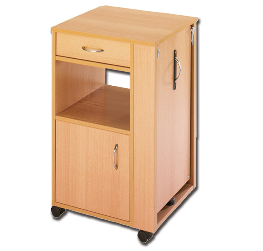 Prodotto in legno naturale di qualità. Particolarmente funzionale: con cassetto, 2 ante (utilizzabili da entrambi i lati) e vassoio laterale.