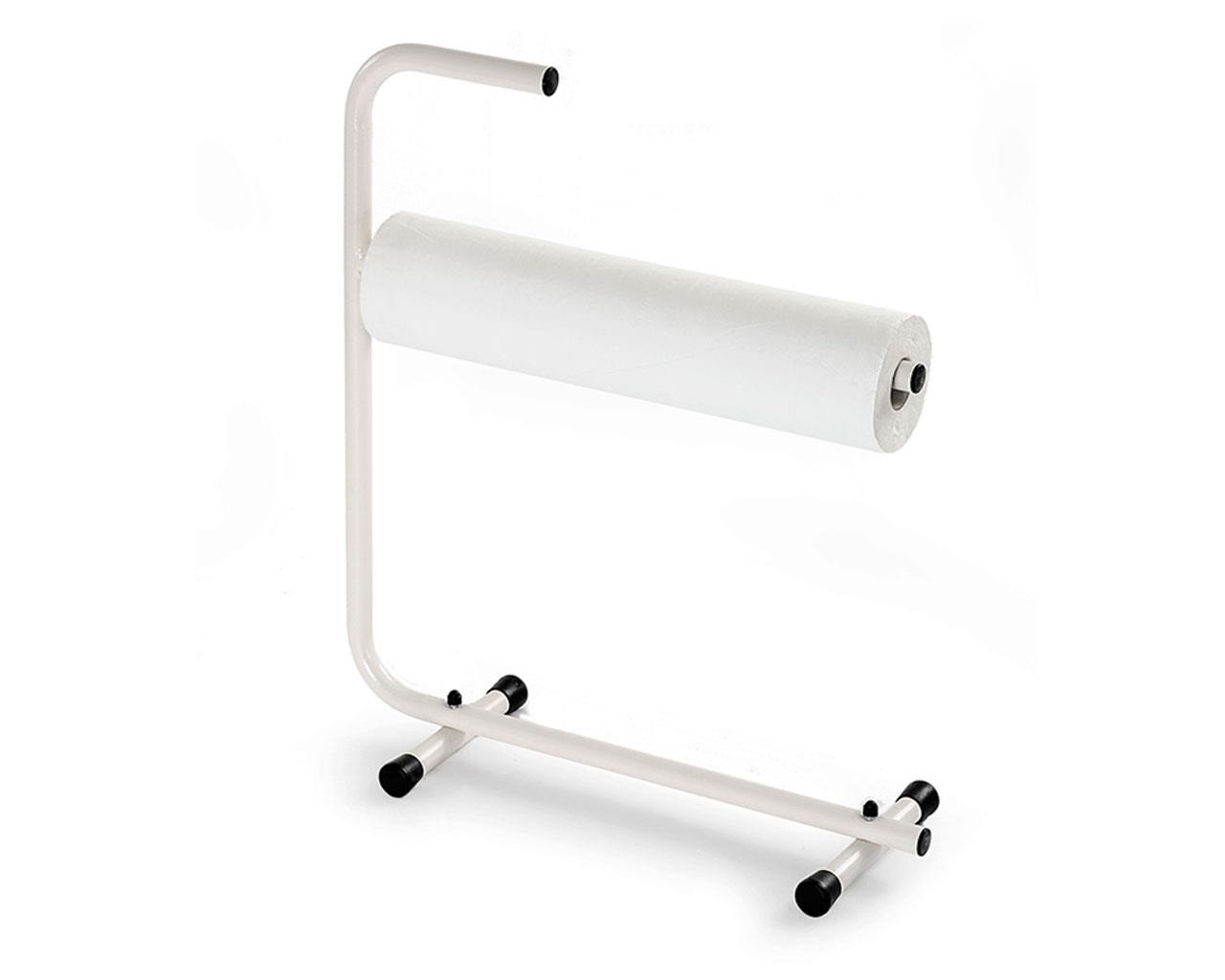 Supporto lenzuolino di carta per lettini visita, massaggi e trattamenti. Struttura in metallo verniciato agevolmente trasferibile.
