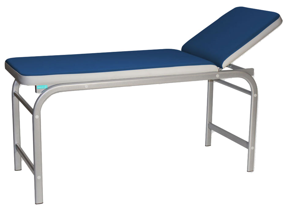 Lettino da visita in acciaio King Plus, con struttura in tubo ovale robusta ed elegante 50×25 mm, verniciata con polveri epossidiche colore grigio metallizzato. Rivestimento lavabile, ignifugo, materiale similpelle classe 1 con imbottitura ad alta densità. Testata regolabile tramite sistema meccanico.