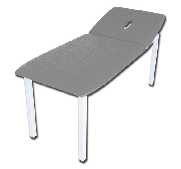 Lettino da visita e per trattamenti dal design avanzato pensato per usi estetici e medicali. Dotato di struttura metallica smontabile e di una sezione regolabile tramite movimento manuale per facilitare le operazioni sul paziente. La testata è provvista di ampio foro naso-bocca (foro facciale) per posizione prona.