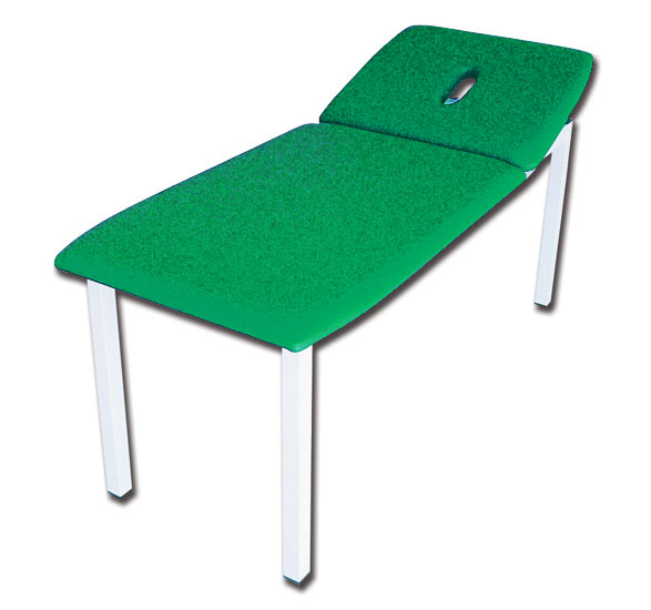 Lettino visita e trattamenti dal design avanzato, dotato di una sezione regolabile manualmente. Robusta struttura in metallo smontabile, verniciata con polvere epossidica resistente ai graffi e alla corrosione. La particolare conformazione della sezione favorisce le operazioni sul paziente. La testata ha un ampio foro naso-bocca. Imbottitura in schiuma ad alta densità. I rivestimenti presentano un elevato livello di finitura e sono costituiti da similpelle di alta qualità con proprietà ritardanti di fiamma. Il vinile è particolarmente resistente a disinfettanti,urina e sangue.
