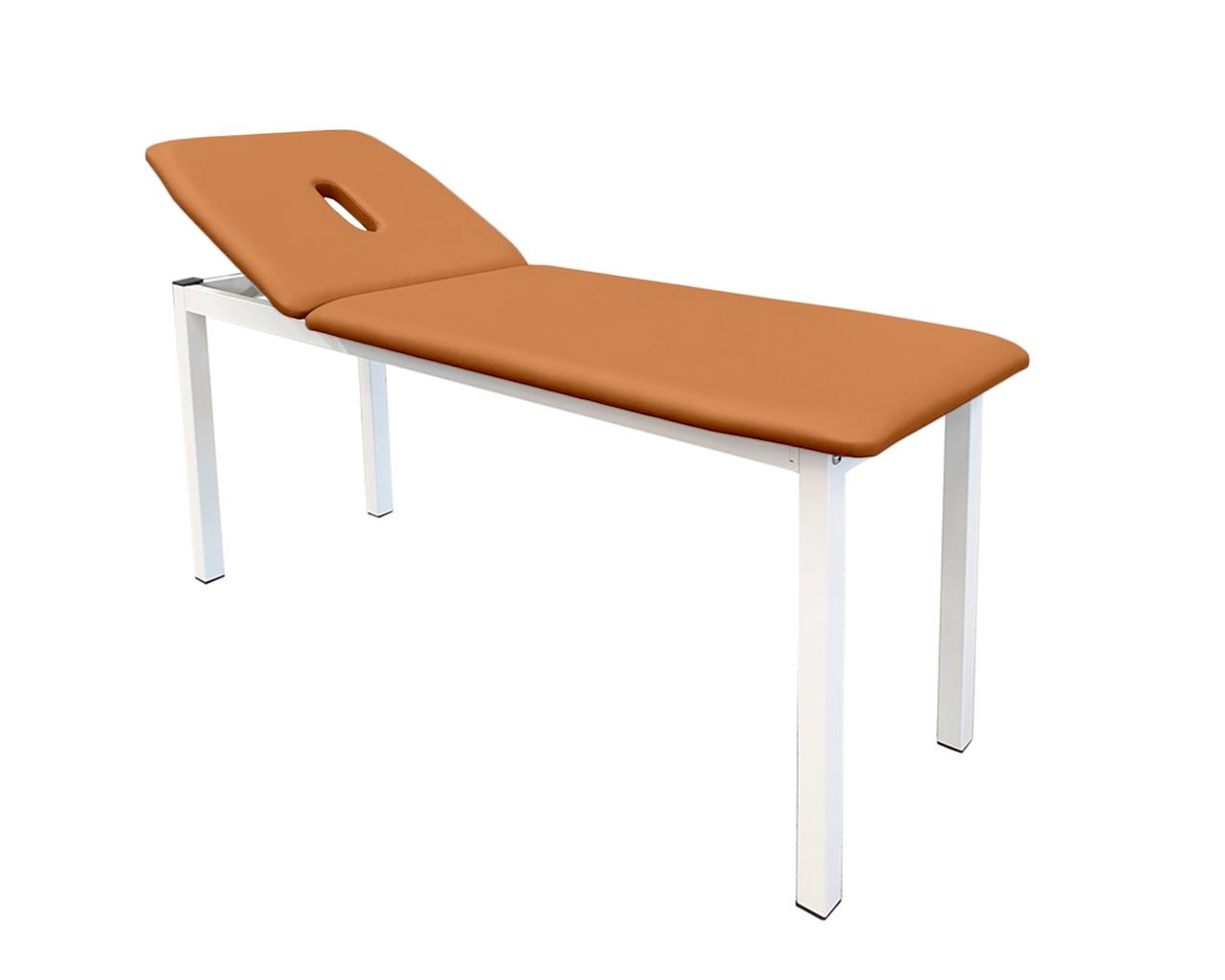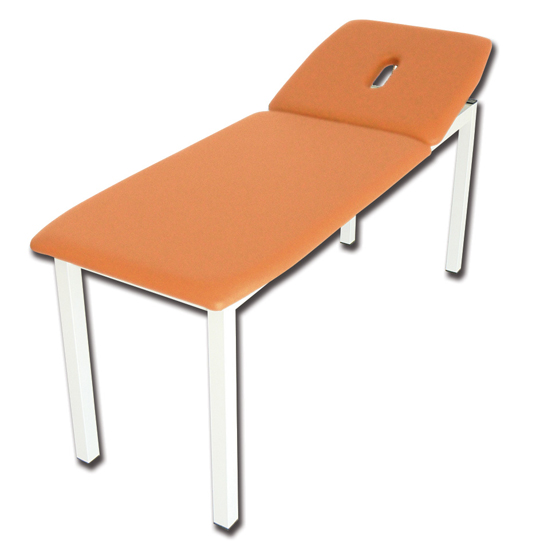 Lettino visita e trattamenti dal design avanzato, dotato di una sezione regolabile manualmente. Robusta struttura in metallo smontabile, verniciata con polvere epossidica resistente ai graffi e alla corrosione. La particolare conformazione della sezione favorisce le operazioni sul paziente. La testata ha un ampio foro naso-bocca. Imbottitura in schiuma ad alta densità. I rivestimenti presentano un elevato livello di finitura e sono costituiti da similpelle di alta qualità con proprietà ritardanti di fiamma. Il vinile è particolarmente resistente a disinfettanti,urina e sangue.