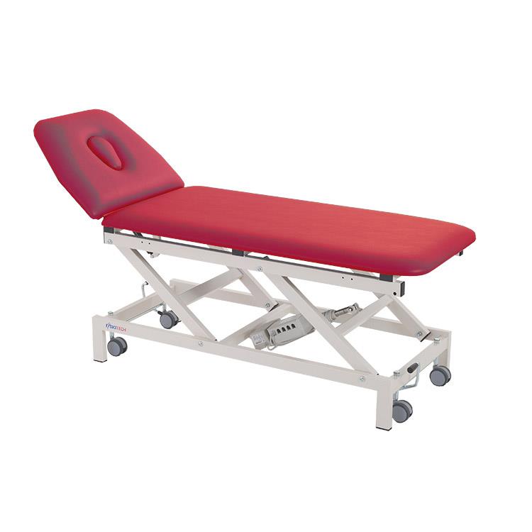 Lettino elettrico a due sezioni regolabile elettricamente in altezza, per terapia, massaggi e visita medica. Grazie alla sua struttura il lettino Elettra 2 permette il passaggio del sollevatore.