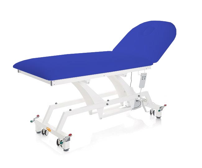 Lettino Lytus con altezza e schienale regolabili elettricamente tramite l'ausilio di 2 motori indipendenti (uno per l'altezza, uno per lo schienale). Struttura tubolare in acciaio verniciato bianco. Imbottitura in poliuretano con densità 25 e altezza 5 cm. Ruote azionabili tramite pedalini. Rivestimento in similpelle lavabile, autostinguente 1IM.