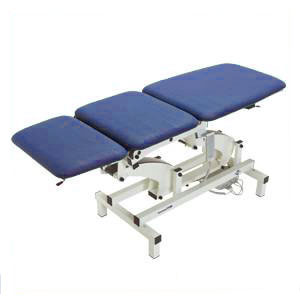 Lettino a tre sezioni mobili, sezioni schienale e poggiagambe con sistema di regolazione servoassistito da molle a gas, mentre la sezione seduta è regolabile elettricamente.
