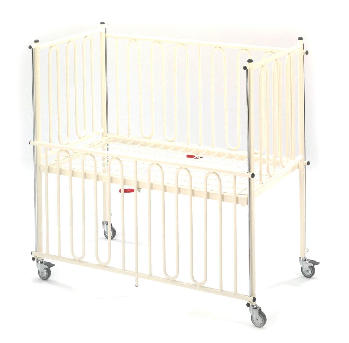 Lettino pediatrico con spalle portanti in tubo di acciaio Ø 30 mm laccate in polvere epossidica, predisposte per l’aggancio al telaio rete.
