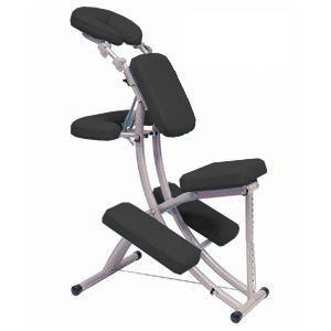Sedia per terapia in alluminio, pieghevole. Ideale per trattamenti spinali, massaggi, shiatsu, agopuntura, reiki, etc. Regolabile alla struttura di ogni paziente incluse donne in gravidanza.
