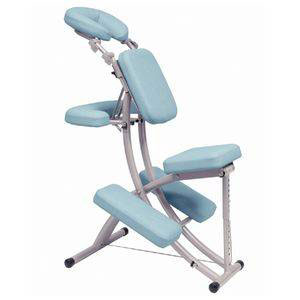 Sedia per terapia in alluminio, pieghevole. Ideale per trattamenti spinali, massaggi, shiatsu, agopuntura, reiki, etc. Regolabile alla struttura di ogni paziente incluse donne in gravidanza.