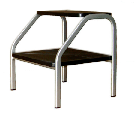 Predellino a due gradini con struttura in tubolare ovale 30 × 15 mm verniciata con polveri epossidiche. Piattaforma antiscivolo.