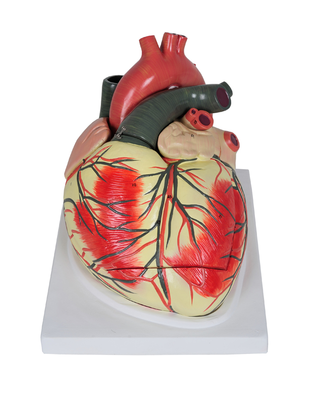 Questo modello anatomico del cuore mostra la struttura interna comprese le valvole cardiache e la morfologia comparativa dei ventricoli destro e sinistro.