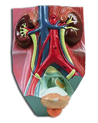 Questo modello mostra le strutture dello spazio retroperitoneale con i seguenti particolari: