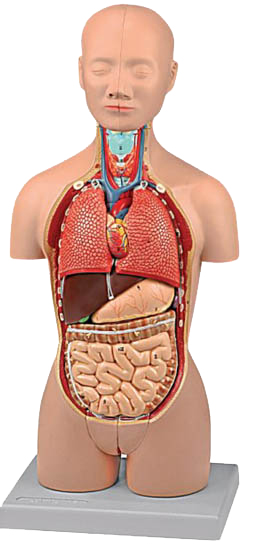 Questo torso a mezzo busto è uno strumento essenziale all'insegnamento dell'anatomia. Il modellino anatomico è formato da 16 parti, come segue: