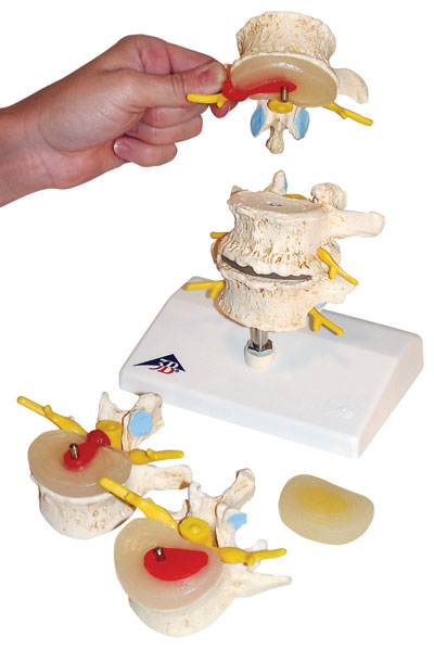 Modello di ernia al disco e degenerazione della vertebra.