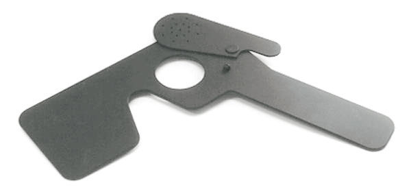 Occlusore con impugnatura. Permette di occludere l'occhio dx oppure l'occhio sx e sovrapporre occlusore con fori stenopeici.