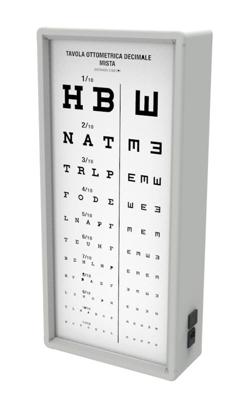 Ottotipo luminoso Gima realizzato tenendo presente le indicazioni cliniche che richiedono una luce bianchissima per una precisa lettura dei dettagli.