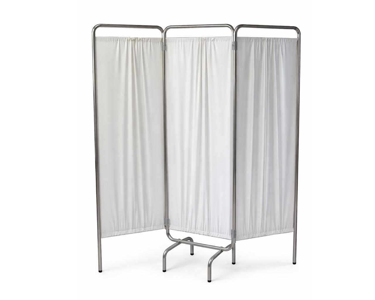 Paravento a 3 sezioni con struttura tubolare in itallumag e tende bianche, pieghevoli e lavabili, in plastica, classe 1 antifiamma.