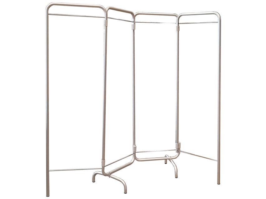 Paravento a 4 sezioni con struttura tubolare in alluminio del diametro di 50 mm. Fornito senza tenda.