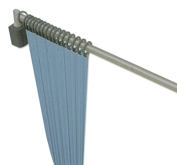La tenda, in Trevira, è dotata di anelli che ne consentono un facile scivolamento, è in materiale ignifugo (Classe I), antiallergenico, antibatterico, impermeabile e altamente resistente alle abrasioni.