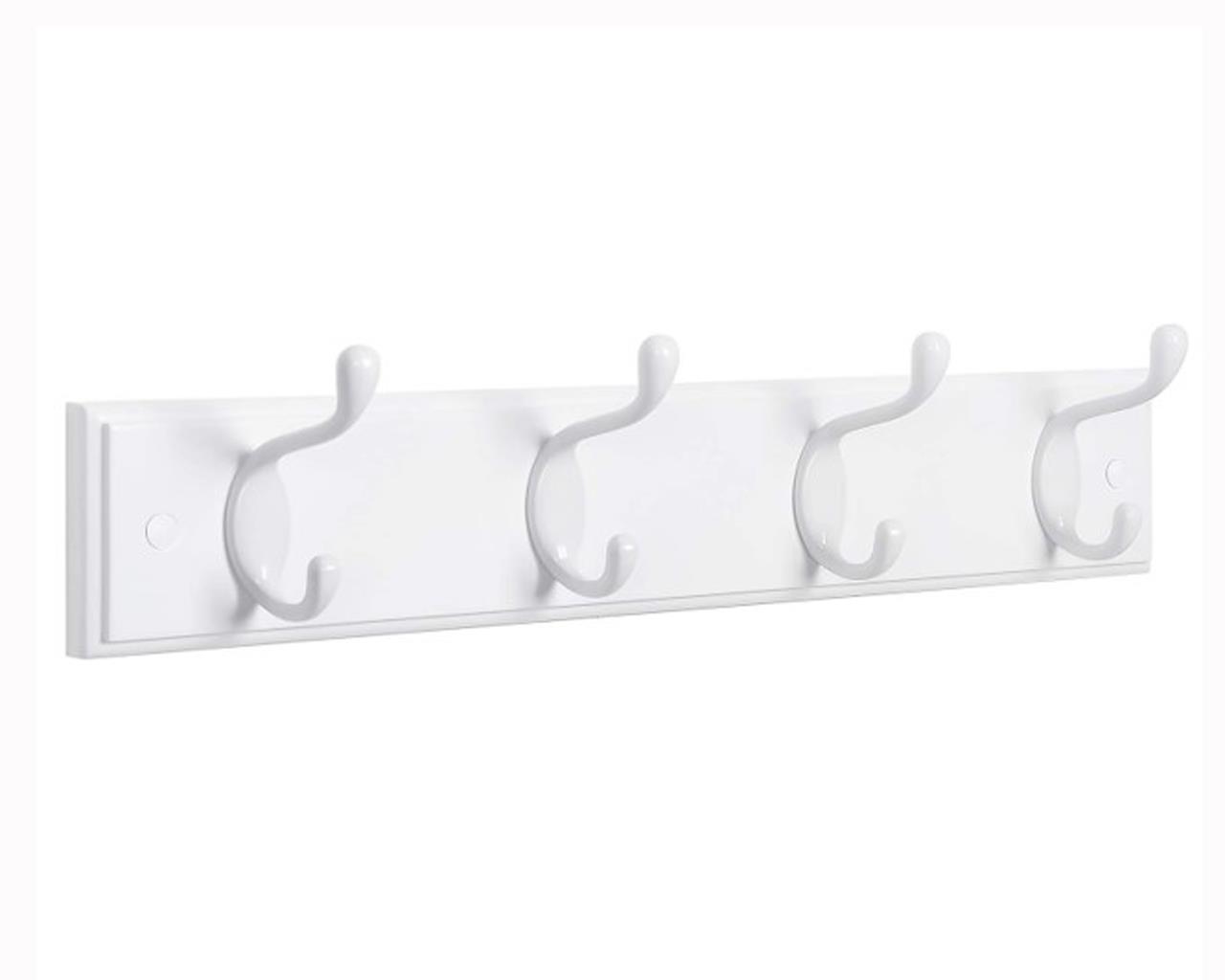 Appendiabiti da parete con 4 ganci doppi (8 posti in totale). Robusto e resistente, i ganci sono in metallo e i pannelli in MDF di qualità; ogni gancio doppio supporta fino a 5 kg di portata.