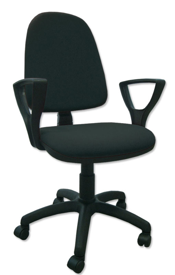 Sedia da ufficio multifunzionale. Base girevole in polipropilene per una grande robustezza e durata nel tempo. La sedia è dotata di appoggia braccia e schienale ergonomico per garantire un contatto continuo con la schiena. Quest'elemento garantisce un livello di comfort superiore oltre ad una corretta postura.