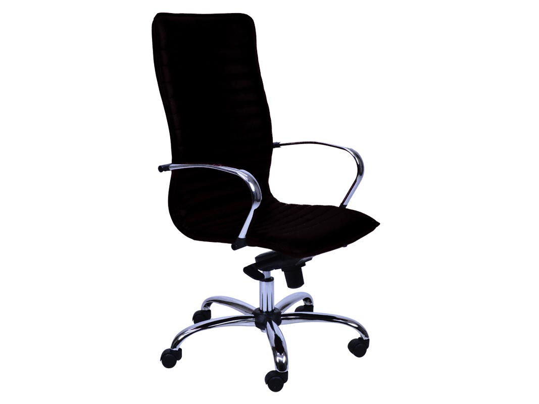 Poltrona direzionale con schienale alto in skai e base e braccioli in acciaio cromato. Altezza regolabile con pompa a gas.
