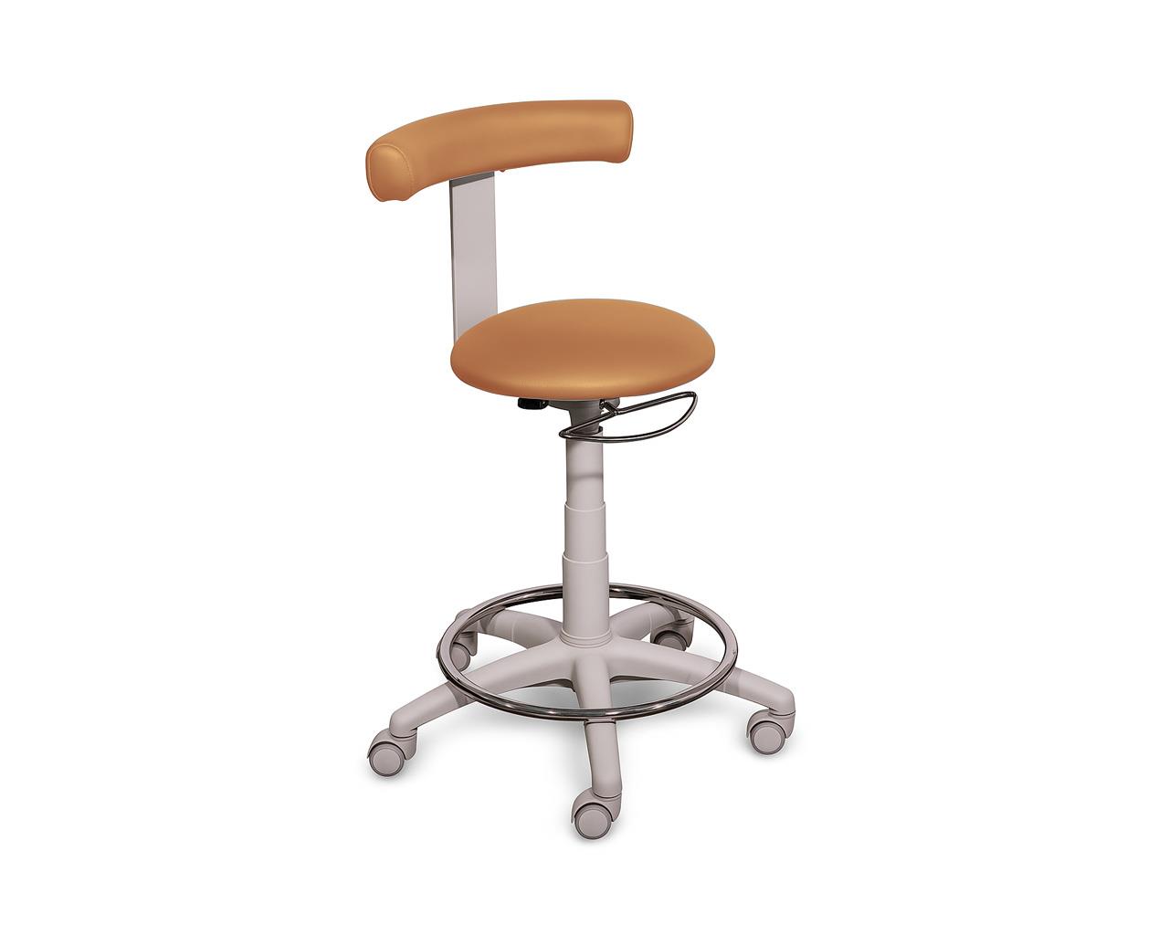 L’altezza può essere facilmente regolata tramite pompa a gas, lo schienale è girevole a 180° e registrabile in profondità. Le imbottiture sono a densità bilanciata e sono rivestite in Peltex.