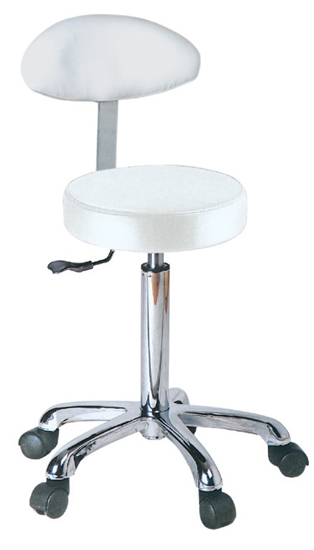 Sgabello professionale con schienale progettato per l'utilizzo in ambulatori, studi medici, laboratori, centri estetici e contesti di assistenza domiciliare. Presenta una seduta imbottita rivestita in ecopelle (PU) e uno schienale di supporto per migliorare il comfort durante le attività di visita o trattamento.