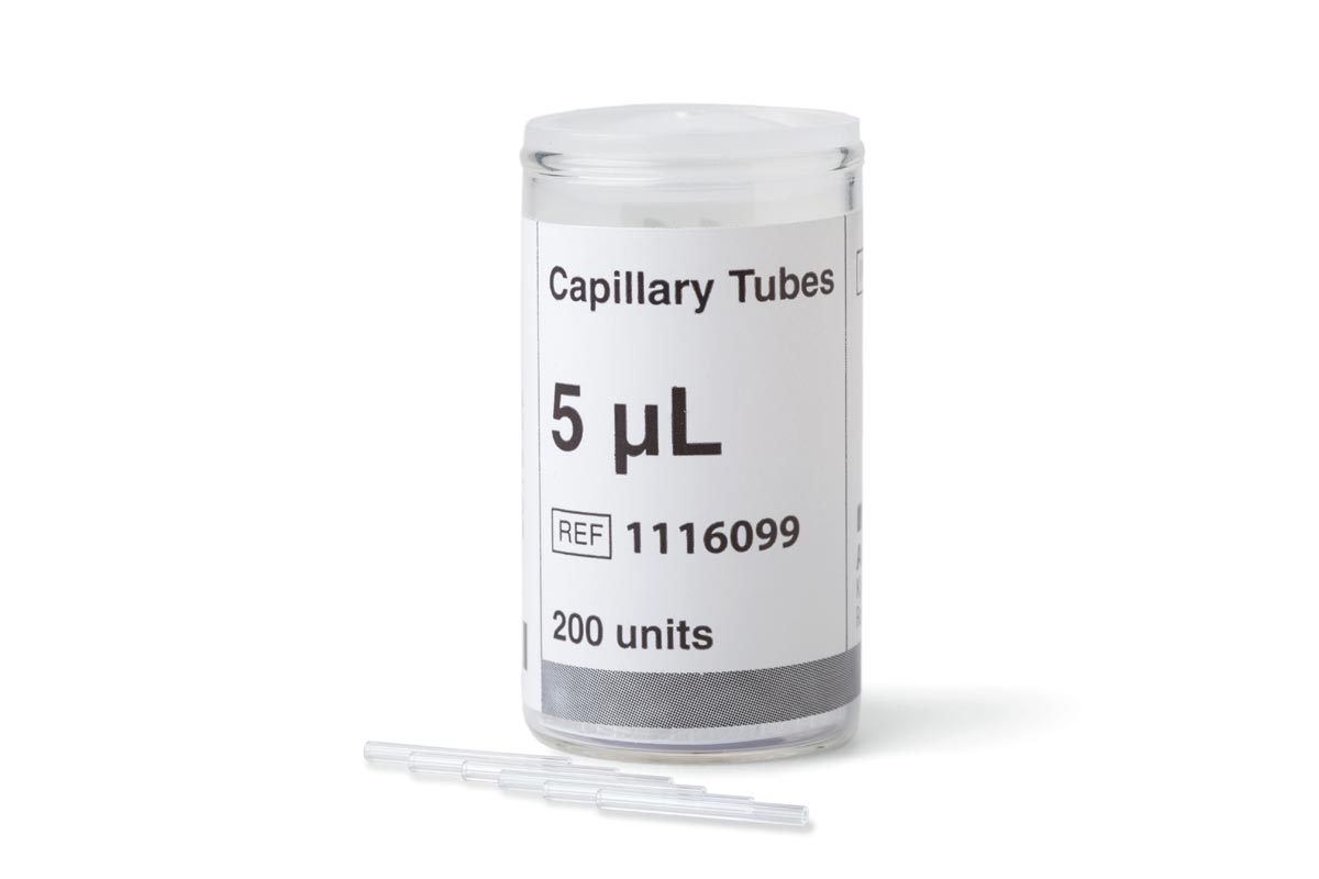 Microcapillari tarati a 5 μL per dispensazione campione per esecuzione test NycoCard HbA1c e NycoCard CRP.