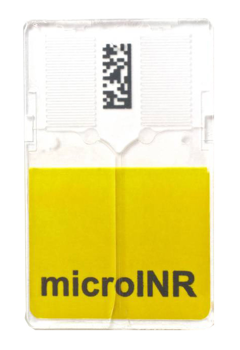 Chip per coagulometro portatile microINR. Ogni chip per microINR effettua la determinazione verificando il processo di analisi con un sistema di controlli di qualità in tre diverse fasi: integrità, flusso del campione e controllo analitico.