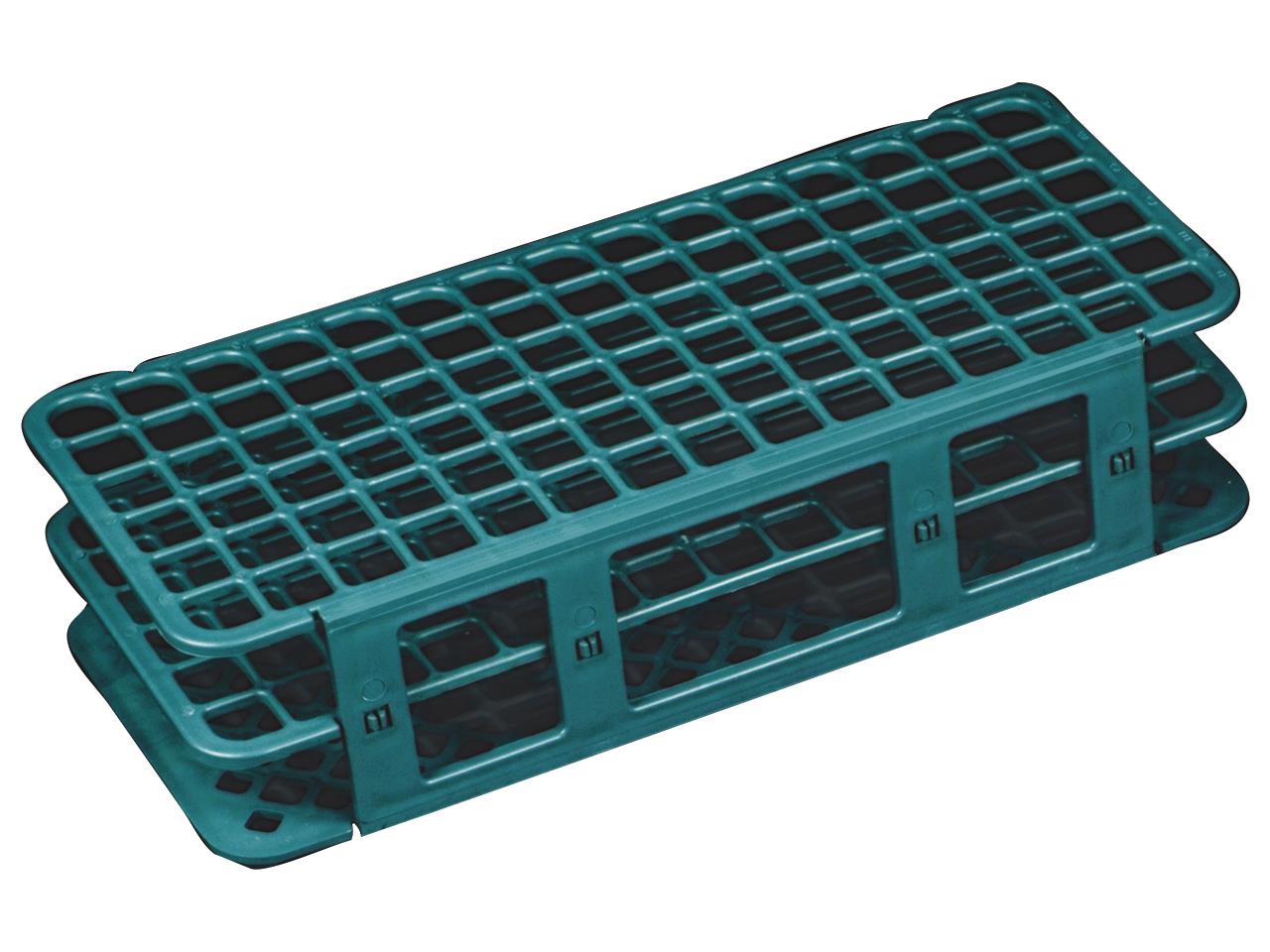 Rastrelliera in polipropilene, autoclavabile, per provette con diametro 12 e 13 mm, che può contenere 90 pezzi.