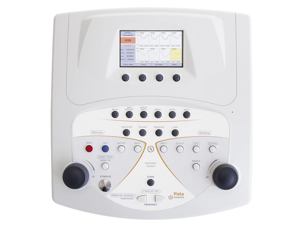 Viola è una combo box che unisce un impedenziometro di screening, in grado di gestire test di timpanometria e dei riflessi acustici, e un audiometro diagnostico in grado di eseguire audiometrie tonali e vocali in VA e VO.