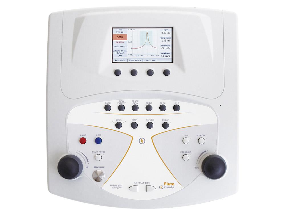 Flute è un impedenziometro diagnostico in grado di eseguire con velocità e precisione li esami di timpanometria e del riflesso stapediale ipsi e controlaterale. Versatilità di utilizzo, una semplicissima interfaccia utente, grande affidabilità e dimensioni ridotte fanno di Flute lo strumento ideale per molti utenti, dall'audioprotesista all'otorino, dalle cliniche agli ospedali.