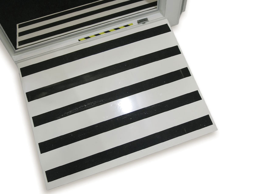La rampa è composta da due elementi, uno interno e uno esterno (salita/discesa) e consente l'accesso con la sedia a rotelle nelle cabine audiometriche Pro 30 e Pro 45.